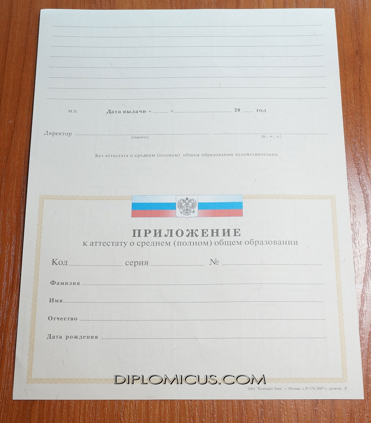 Аттестат о среднем образовании за 11 класс